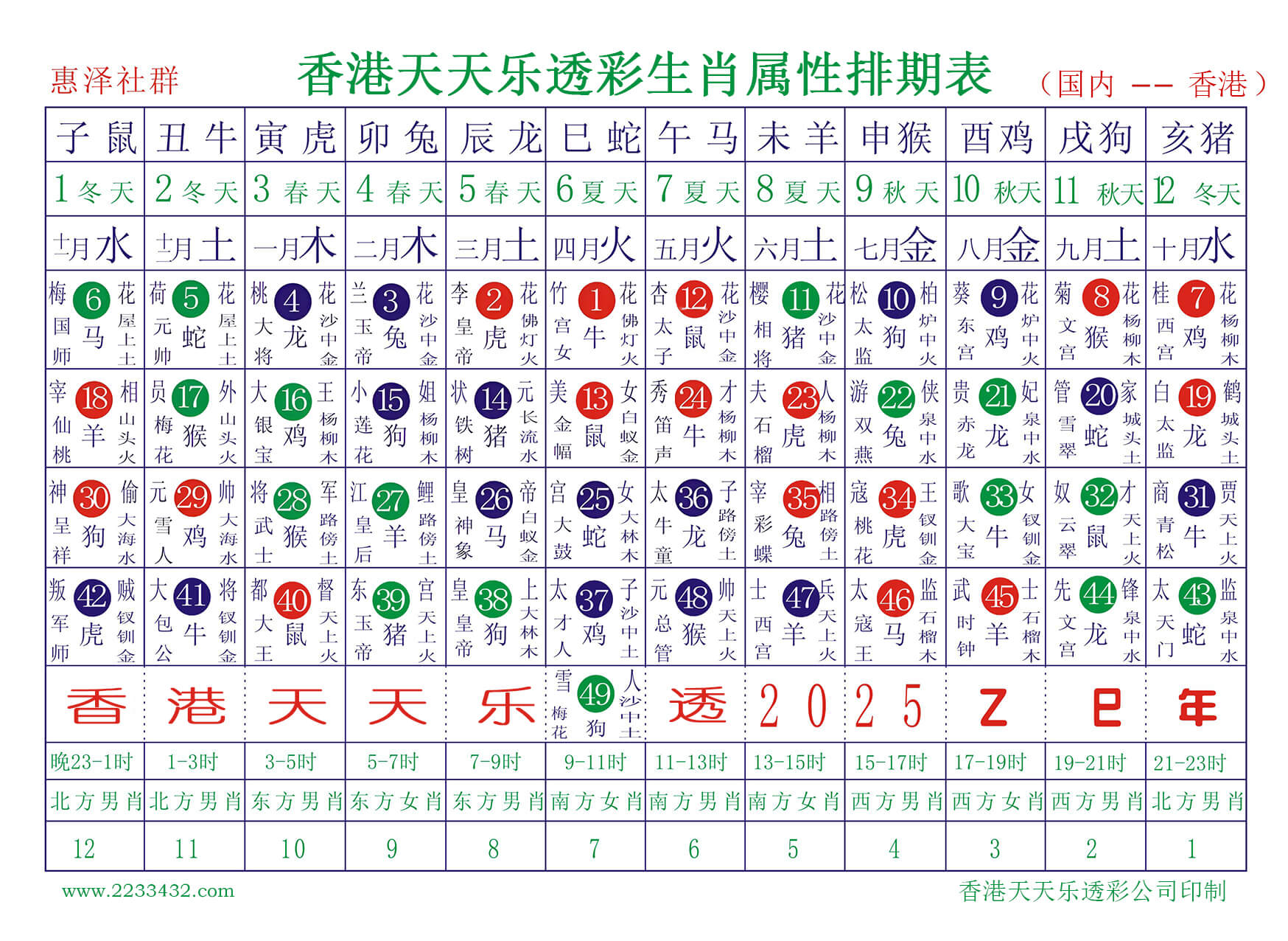 2025蛇年(十二生肖号码对照)